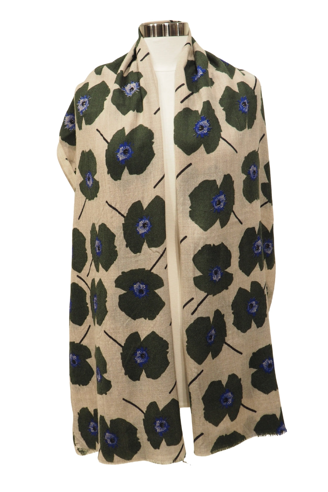Because the patterns are applied by hand, no two scarves are exactly alike.